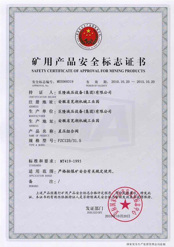 > 企业概况 > 产品证书